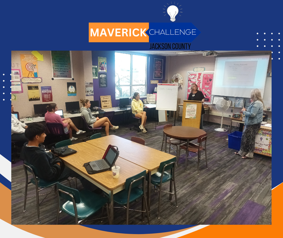 Students can work individually, with a partner or with more than one partner and pitch their business idea to local business professionals. They are paired with a mentor to help them work through the process, and in February, the top 10 finalists give oral presentations in front of a panel of judges. There, they have an opportunity to earn money and be named the 2026 Maverick Challenge Jackson County winner.