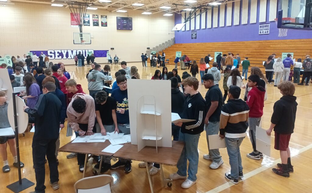 Nearly 600 eighth graders from nine Jackson County schools visited the event throughout the day Dec. 5 in the gymnasiums at Seymour Middle School.