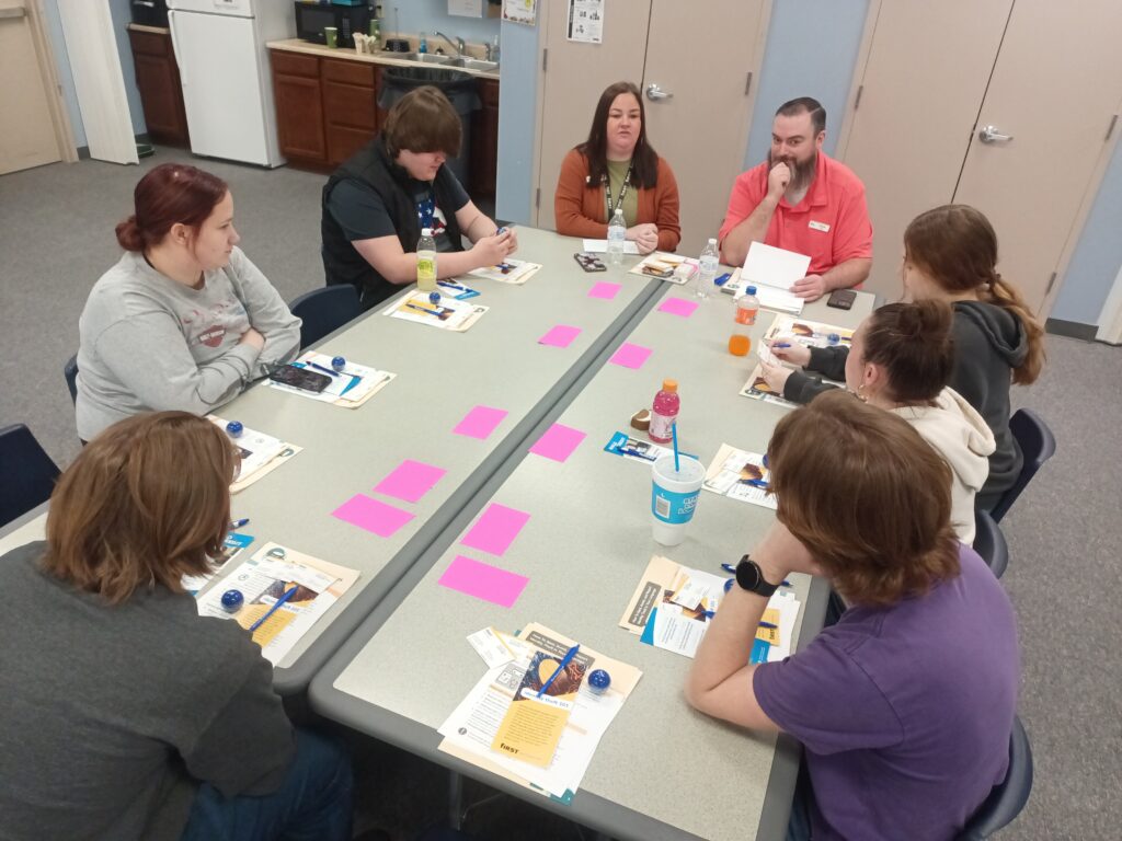 During the morning, the students split into groups and rotated between four workshops. Job search/postsecondary was led by Tina Hacker and Yesenia Otero with Pet Supplies Plus. Health care was led by Jena Hanks with Healthy Jackson County and Carrie Schryer and Paul Ramsey with the Jackson County Health Department. Financial was led by Sehrish Sangamkar and Ricardo Gamboa with Centra Credit Union and Amanda Barlow and Derek Green with First Financial Bank. Living skills was led by Maci Baurle with Jackson County United Way and Jeri Wells with Seymour Housing Authority.