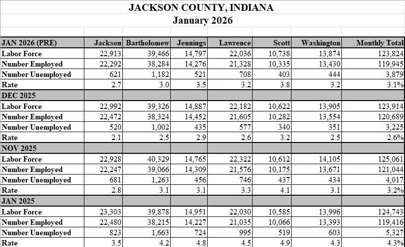 For the most current labor availability information for Jackson County, Indiana, and surrounding counties, view the chart below.